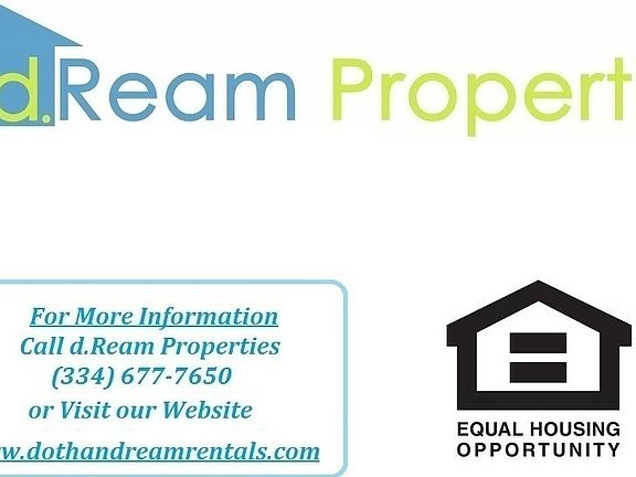 1b/1b Apartment, Stove, Refrigerator, Dishwasher, W/D Connections - Lawn Service, Pest Control, Garbage Service Provided. For More Infortmation Visit www.dothandreamrentals.com or Call d.Ream Properties at (334) 677-7650. $25 Application Fee Per Applicant or $40 Per Married Couple