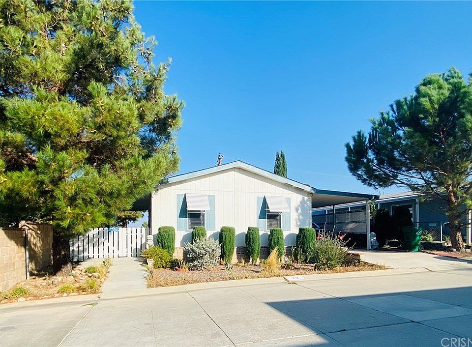 Turnkey Manufactured Home in city of Palmdale owned park. This home offers a good size living room with gas fireplace. Open kitchen with center island, plenty of cabinets and counter space in addition to upgraded appliances. Split floor plan has 3 bedrooms, hall way bathroom has glass shower doors. Plus specious master bedroom, large bathroom has dual vanity, separate shower and tub. Newer laminate flooring and paint, ceiling fans, indoor laundry room. New A/C, storage unit private patio and large carport. Community pool, recreational center, game room, kids play area, 24/7 Security.