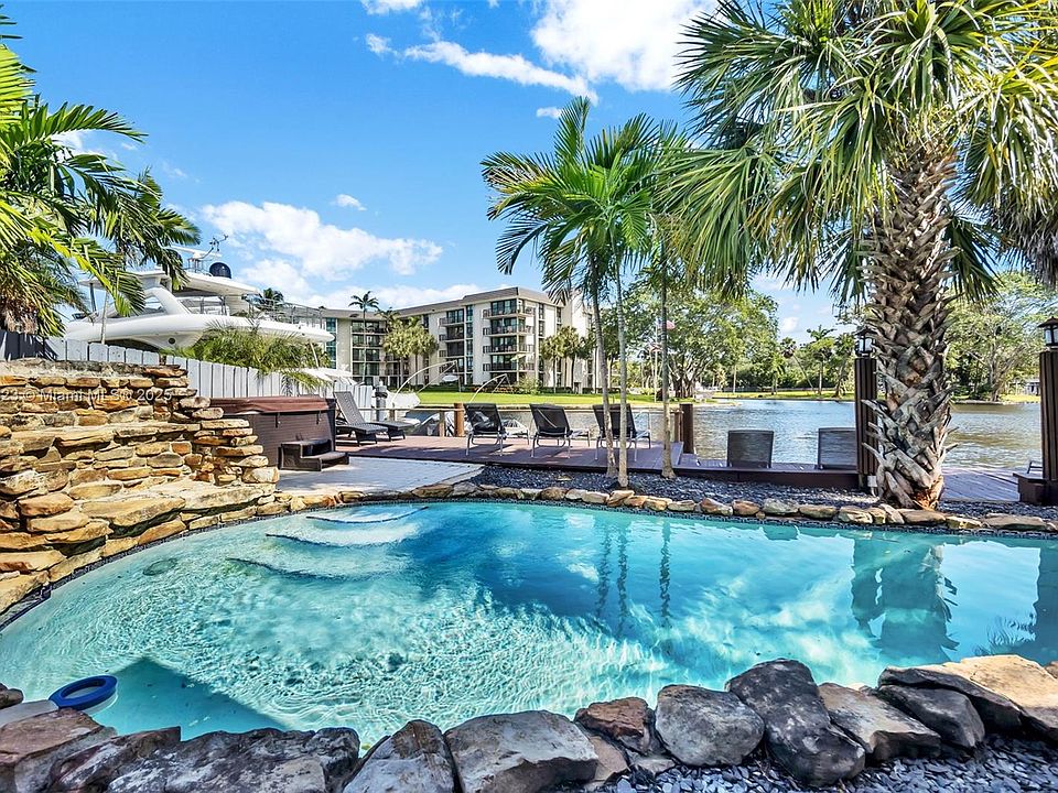 Experience Riverbend Retreat, a fully furnished 4BR/3BA waterfront estate in downtown Fort Lauderdale. Situated on a private road with Old Florida charm, this modern villa features marble finishes, custom art, and open living spaces. Enjoy a heated pool with waterfall, hot tub, and private dock with 50-amp power in an extra-wide basin ideal for catamarans or sailboats. Deepwater access with no fixed bridges. Perfect as a full-time residence or short-term luxury rental, offering privacy and convenience just minutes from Las Olas, Riverwalk, and the beach.
