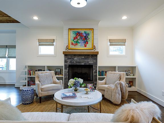 Newly constructed home in the center of Homewood. This open floor plan has a customized stain 3/4 inch hickory wood flooring, masonry gas fireplace surrounded by built in bookshelves, specialized barn wood ceiling reclaimed from a historic property. It also has custom masonry accent wall and flooring, white Carrera marble counters with Black Mist marble island in the kitchen, Crema Calcutta counters in the master bath with spacious white Carrera marble tiled shower with a bench and beautiful navy accent wall. The second bathroom's hand painted floor tiles and subway tiled shower with double vanities are a special touch in this beautifully appointed home. The recreational and media rooms downstairs are equipped with projector wall and accented with renowned local artist's hand painted concrete flooring.
