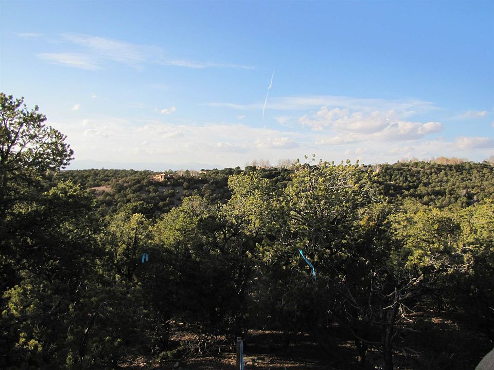 Nearly one-acre lot with amazing views and perfect location! Located right above the Santa Fe Plaza in the serene Sierra Del Norte neighborhood. With beautiful 360 degree sunset views, this lush tree covered landscape is near hiking and biking trails and is a quick drive to the Santa Fe Ski Basin. Privacy and serenity with the convenience of city utilities and paved access, this is the perfect piece of Santa Fe to build your next dream home on. Sale includes architect's plans for a 2000-square foot home!