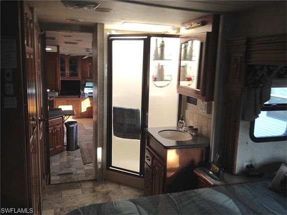 Well Landscaped 35 x 70 lot on the lake with beautiful view. Includes the complete package, Lot,5thW, Lanai,& Shed A top of the line 2008 Newmar 5th Wheel M37 LSK Diamond Package with many extras all in excellent condition. The well equipped Lanai is 12' 6" x 35', enclosed with windows and vertical blinds, 2 fans, lights, tiled table & chairs Shed has washer/drier & refrigerator and has large doors. A MUST SEE PROPERTY IN EXCELLENT SHAPE ! Site is gated community featuring a popular 9 hole Executive Golf Course & includes water, sewer, cable TV, Welcome Center, Club House (2) with dance floor and Banquet Room, Fitness Center, Library and 3 pools & saunas.