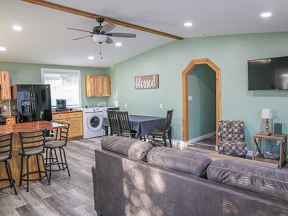 FURNISHED Newly Built Home with everything you need for a SHORT-TERM Rental (1 to 12 months). ALL UTILITIES PAID. Spacious 800 sq.ft. with fully fenced yard and 3 - 4 parking spots. NO pets allowed. Inside washer and dryer, ceiling fans, large kitchen and master bed. Small second room. LARGE front porch and firepit area. Minutes to lake, Cranes Mill Park, boat ramps and Startzville. Need proof of income and great rental history. BRAND NEW FULLY FURNISHED HOME. ALL UTILITIES PAID, including cable. SHORT TERM RENTAL - 1 to 12 months. Fully fenced in yard. Need proof of income and great rental history. Deposit: $1800.