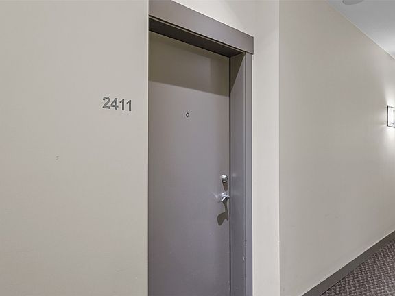 North-facing unitSpacious covered patioQuartz kitchen countersTile backsplashStainless steel appliancesStylish barn door entrance