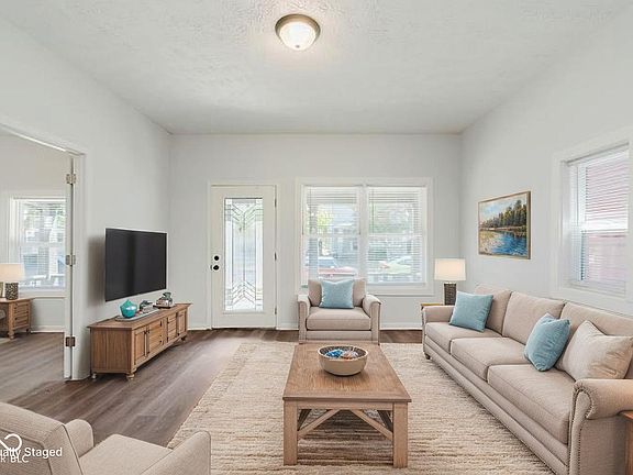 Looking for a move-in ready 2-bed home in Golden Hill under $170K? This charming brick ranch near Newfields and Riverside Park offers hardwood floors, formal dining, and a full basement with expansion potential-all for just $169,900. Nestled in the tree-lined Golden Hill neighborhood, this 2-bedroom, 1-bath home offers 1,160 sq ft of updated living space on the main level, with an additional 728 sq ft unfinished basement ready for your vision. Original hardwoods flow through the spacious living room and both bedrooms. The formal dining room connects to a vintage-style kitchen with eat-in space and backyard views. A full brick exterior, classic front porch, and detached 1-car garage bring timeless curb appeal. The 0.12-acre lot is manageable but private, offering space for pets, gardening, or outdoor gatherings. Key systems include a gas water heater and forced air heating. Located in Indianapolis Public Schools district, the home is minutes from IUPUI, Downtown Indy, and walkable to cultural landmarks like Newfields and the 100 Acres Art & Nature Park. This solid 1950-built home blends character and opportunity-perfect for first-time buyers, downsizers, or investors looking for strong rental potential. There's no HOA!