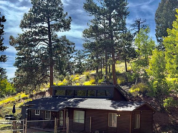 ADORABLE mountain cabin located on a PRIVATE beautiful treed one acre of land! Level front yard features a GORGEOUS Pikes Peak & Rampart Range view! The front yard is all fenced in for those dogs &/or kiddos. Walking in the front door you feel the peace & seclusion you are looking for! This home has MANY upgrades & was just updated with brand new wood burning stove, vinyl plank flooring, subway tile behind the charming claw foot bath tub, all new doors, many new windows, & a new washer/dryer. The wood burning stove with a thermostat & blower easily heats the entire house. Located just minutes from Woodland Park yet it feels totally secluded, with amazing views, providing the best of both worlds! This cabin earth home shows pride of ownership. A new roof was put on in 2017. The living room features a vaulted ceiling that lets all the wonderful morning sun in with all of the large windows. There are many eastern facing windows which make the home solar passive! The kitchen is efficient & very appealing! A new fan has been installed above the stove/oven. There is a 1500-gallon cistern that has a newer submersible pump. This is a special find that doesn't present itself very often. If you want the Colorado experience, but don't want to live far out, this is it! The living room/dining area/kitchen have a great room/open area concept. This home was used as a second home as well as a very successful short term rental. Whether you are looking for an investment property or a primary home, you will fall in love with this one!