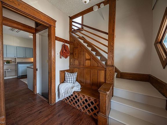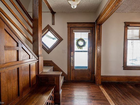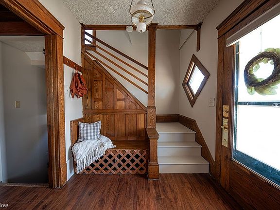 Conveniently located close to Ravenna's historic district, this 3-bedroom 2-full bath historical home has been beautifully updated while keeping all of the charm. The front porch houses a porch swing and leads to the beautiful, original front door. In the entry, there is a built in bench seat surrounded by original wood work. The living room features a beautiful stone wall and gas fireplace. Original wood columns separate the living and dining rooms. The dining room also houses a sweet built in window seat. Through the sliding glass doors you have access to the covered deck and private back yard. The generously sized kitchen has been fully updated with fresh paint, cabinets, counter tops and more charming built in shelving. The downstairs bathroom houses the laundry and access to a large storage room. Upstairs you will find three bedrooms and a full bath. The oversized detached garage has electricity and is heated, perfect for a workshop! The charming details in this home are everywhere. With the hardwood floors, beautiful woodwork and foot high baseboards, there is lots to love!