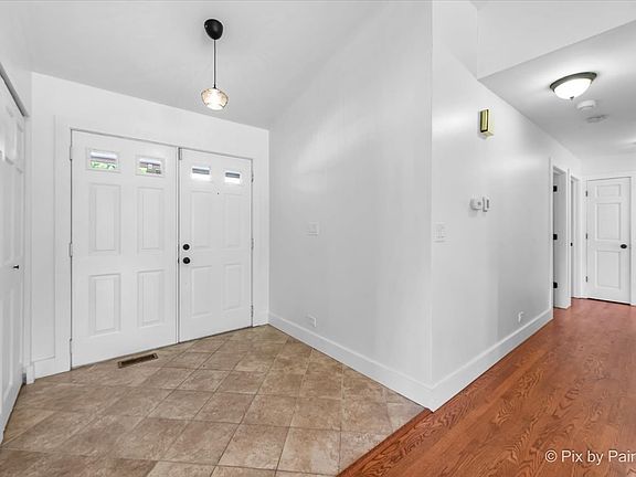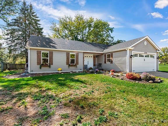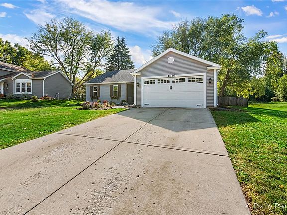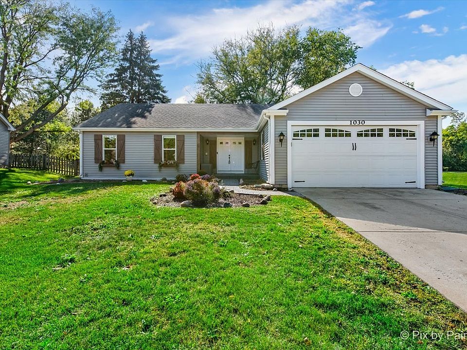 Step inside this beautifully updated Fox Trails 3-bedroom, 2-bath ranch home offering fresh paint, refinished floors, new windows in 2024, updated bathrooms, a fenced-in yard, full finished basement, and a 2-car garage-the perfect blend of comfort and modern updates. The foyer opens to a large living and dining area with vaulted ceilings, creating a bright and airy feel throughout. The kitchen features granite countertops, stainless steel appliances, and a spacious eating area that flows seamlessly into the family room with a cozy gas fireplace-perfect for everyday living and entertaining. The primary suite offers direct access to the deck and backyard, providing a peaceful retreat. The two additional bedrooms are generously sized with great closet space, and the updated shared bath showcases custom tile work in the shower and a modern vanity with gold fixtures. Step outside to enjoy the beautiful deck that stretches across the back of the home, surrounded by mature trees for privacy and shade. Experience the perfect combination of comfort, updates, and convenience in this move-in-ready Fox Trails gem!