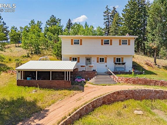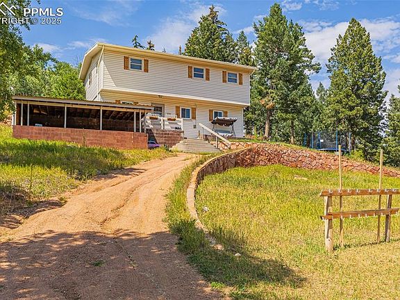 Welcome to this inviting 4-bedroom, 2-bath home nestled just outside Woodland Park city limits. Set on a spacious .73-acre lot, this property offers the perfect blend of convenience and freedom. Inside, you’ll find warm wood accents throughout, giving the home a cozy mountain feel. The primary suite features its own fireplace, creating a relaxing retreat after a long day. Excellent built-in storage, a huge pantry, and a large laundry room ensure there’s space for everything. Step outside to enjoy the wood deck overlooking the private backyard, perfect for morning coffee or entertaining under the pines. A carport provides covered parking, while the expansive lot offers room to breathe and embrace the Colorado mountain lifestyle—all without city restrictions. This home combines rustic charm with everyday functionality—an ideal opportunity for anyone looking to make Woodland Park their home base.