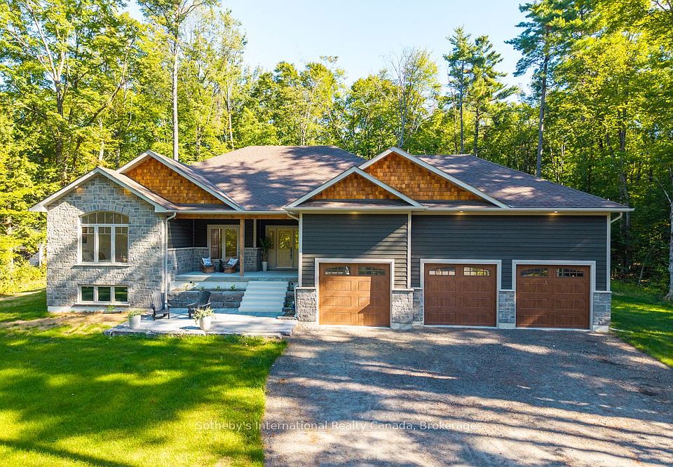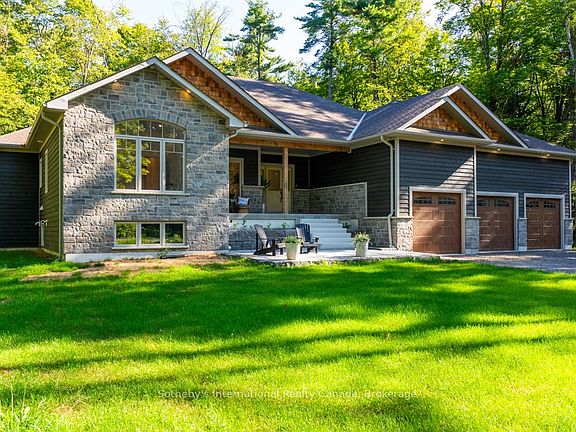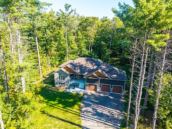 Tucked away on a peaceful private cul-de-sac and surrounded by natural beauty, this stunning 3-bedroom, 3-bathroom home offers over an acre of tranquil living in one of Kilworthy's most desirable communities. Set on a premium flat, wooded lot, this thoughtfully designed home features 9-foot ceilings, an open-concept layout, and overbuilt structural quality for worry-free, modern living. The oversized covered front porch (landscaping and stairs to be completed before closing!) creates a warm welcome and the perfect spot to unwind outdoors. Step inside to a light-filled interior where every room is bathed in natural sunlight. The heart of the home is a beautifully appointed kitchen with sleek quartz countertops, a large island with prep sink and seating, abundant cabinetry, a dedicated coffee bar, and high-end appliancesideal for entertaining or daily life. The adjoining dining area features a striking vaulted shiplap ceiling, while engineered hickory flooring adds warmth and elegance throughout. Relax in the cozy living room complete with a propane fireplace and shiplap surround, all while enjoying peaceful views of the surrounding forest and passing wildlife. The private primary suite is a true retreat, offering direct access to the back deck, a walk-in closet, and a luxurious ensuite designed for ultimate relaxation. Need more space? The unfinished basement provides incredible potential for customizationwhether you envision an in-law suite or recreation spacewith its own private entrance through the attached 3-car garage. Enjoy peace of mind with Tarion warranty coverage, HST included, and a home that's been built to exceed standards. Just minutes from Highway 11, Kahshe and Sparrow Lakes, golf, shopping, and entertainment, this is the perfect combination of nature, luxury, and convenience.Don't miss your chance to own this showstopperschedule your private viewing today!