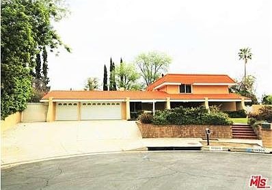 Luxuriously warm over 3500 sq.ft. cul-de-sac home just made available in perfect neighborhood! This home's ideal combination of modern and classic features 2 master suites and a naturally flowing floor plan, a 17,621 sf lot jeweled with a beautiful pool and spa, and a school system nationally recognized (Beckford Elementary, Nobel Middle School, Granada Hills Charter High School).Situated in one of Porter Ranch's most desirable locations, a covered portico entrance and double doors open to an elegant foyer with wrought-iron railing, classically inspired light fixtures, and rich dark-wood flooring. The living room is bathed in natural light from a floor-to-ceiling picture window, and infused with class from an elevated hearth fireplace. The strikingly handsome kitchen with scenic patio access features granite topped counters and breakfast bar, deep-finished custom cabinets, and perfectly complementing. This estate home has 2 individual central air units. Detached Office/Gym and more