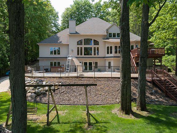 Are you ready to live on the prestigious all-sports Corey Lake? Stunning views YEAR AROUND! This custom-built masterpiece (2001), on prime 1/2 ac lot with a lovely shallow & sandy bottom shoreline! Dock is ready to go. The lakeside yard is level, partly shady and complete with upper/lower decks, POOL & SPA! From the moment you walk through the front door, it's Lake views galore! With 24 foot ceilings in the living room, the floor to ceiling windows are breathtaking. This 6 bedroom , 4 bath home features approx. 6276 finished square feet, with generous amounts of storage throughout! The sprawling main level also includes the primary suite, another bedroom, ½ bath & laundry. The lower level feels like another house in itself, featuring a living room (w/fireplace) kitchenette, bedroom, rec room & full bath. 3 car heated garage & new cement pad added for a boat or motorhome. Whole house Generac generator included, newer pool liner & cover. This well cared for home is truly a MUST SEE to appreciate, enjoy Corey Lake year around! Whether you enjoy the summer lake activities, the fall bonfires lake side or winter ice fishing.....the home truly offers it all!