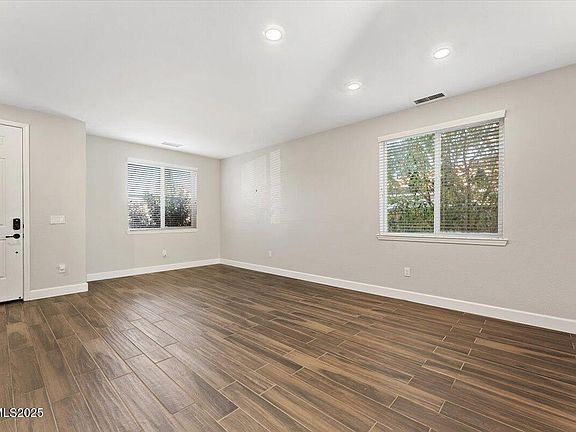 Immaculate South Reno home backing to common area / open space with beautiful mountain views and no direct rear neighbors. Walking distance to Damonte Ranch High School! The open and functional floor plan features wood-look tile throughout the main level, recessed lighting, and large windows that capture natural light and scenic views. The kitchen offers granite counters, rich espresso cabinetry, stainless steel appliances, and a large center island overlooking the great room—perfect for entertaining or family gatherings. Upstairs, the spacious primary suite includes a dual-sink vanity, separate tub and shower, and walk-in closet. Enjoy low-maintenance landscaping with synthetic turf, extended paver patio, and privacy fencing—an ideal outdoor retreat with panoramic hillside views. Conveniently located near schools, parks, and shopping with easy freeway access.