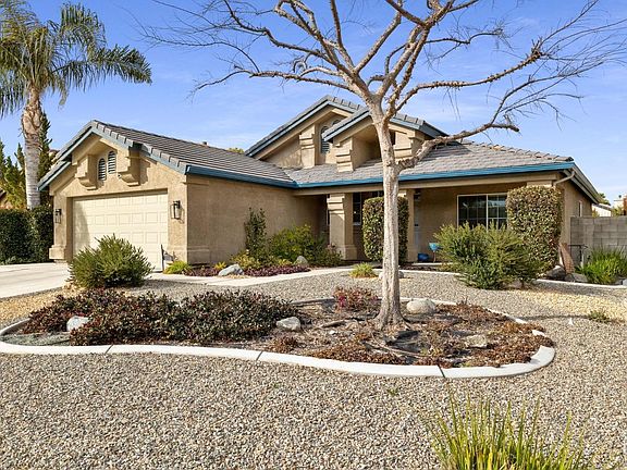 Welcome to this elegant 4-bedroom, 2-bathroom home on a 7,405 sq foot corner lot! Open and bright floorplan yet desirable privacy with the 4 bedrooms being in different sections of the home. Offering neutral yet modern upgrades in the kitchen and bathrooms, along with stylish wood grain tile flooring, upgraded carpet in the bedrooms, and newer interior paint throughout, perfectly matching any furniture and decor. Spacious primary bathroom with dual sinks and a generous size walk in closet. Living room and kitchen feature tall ceilings and large windows that bring in the natural sunlight. Attractive lighting fixtures and ceiling fans throughout that appeal to the home's neutral yet modern vibe. Step into the backyard, which has been tastefully done with xeriscape landscaping. Featuring different types of mature plants, trees, and bushes and easy to maintain. Designed with travertine patio flooring, a firepit, and block wall fencing, your private oasis is complete!