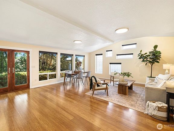 Refreshed kitchenSpacious primary suiteWalk-in closetLarge windows overlooking greenspaceVaulted family roomPrivate deckWhite cabinetry
