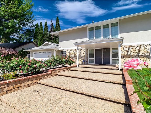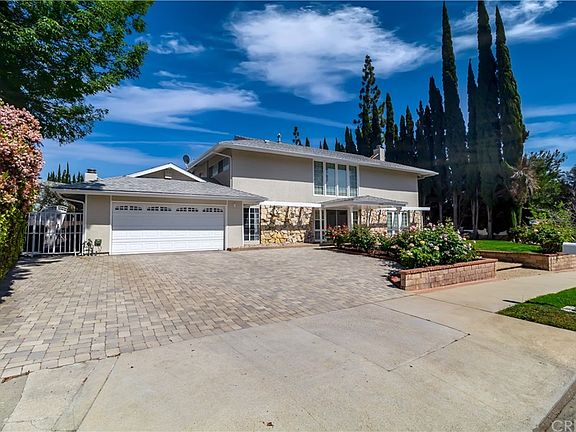 Welcome to this stunning 5 bedroom home in a prime Chatsworth location. Completely updated from top to bottom, this property exudes style with a modern flair. The grand, double-door entry welcomes you into the spacious foyer with vaulted ceilings and dramatic staircase. Enter the formal sitting room featuring a floor-to-ceiling stone surround fireplace and French doors that lead to the backyard. Downstairs, you will also find a formal dining room, along with an open floorplan kitchen, second dining room, guest-room, and large family room with a built-in wrap-around wet bar. The kitchen features dark granite countertops and white cabinetry. The large breakfast bar opens to the second dining room. Upstairs youâll find four spacious bedrooms, including a large master en-suite with walk-in closet, dual vanities, and a grand, double-door entry. A large, enclosed sunroom is also featured on the second level. Multiple access points lead to the beautifully planned backyard featuring in-ground pool (redone in 2014) with built-in water spouts, a paved, wrap-around patio with an outdoor kitchen complete with two built-in grills and outdoor sink. Located on a large, corner lot with over 11,000 sf, youâll find nearby shopping, grocery stores, restaurants, and Mason Park. Other features of the home include Nest smart thermostat, recessed lighting, updated heating system (2016), composition roof that was redone in 2017, front and backyard sprinkler system, and dual-zone air conditioning.