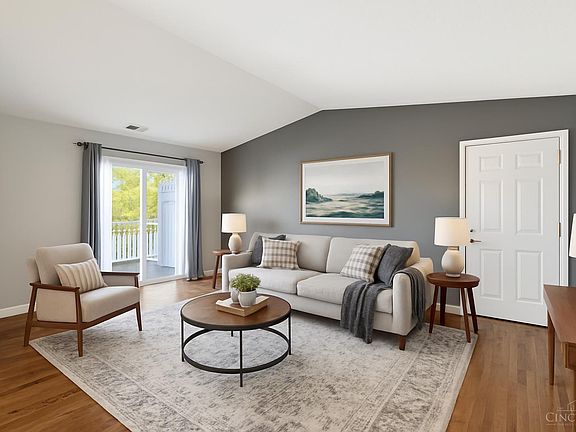Stylish freshly painted condo with vaulted ceilings and gorgeous hardwood floors. Open floor plan with a covered balcony off the living room. Kitchen appliances, washer, dryer and water softener included. The dishwasher and garbage disposal are less than a year old. The building had a new roof put on in 2023. Two bedrooms and two full bathrooms. This is your chance to make your goal of home ownership a reality. Conveniently located to the highway and trendy restaurants in Harrison. Just minutes to the DORA district in downtown Harrison and Miami Whitewater Park and golf course. This condo is move-in ready and waiting for you! You may qualify for a conventional loan with only 3% down! Check with your lender for details. Some photos are virtually staged.
