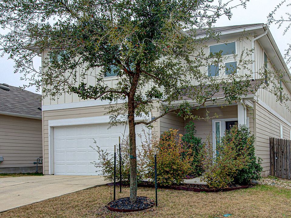 Don't miss this stunning 4-bedroom, 2.5-bath home in Vistas of Austin! Thoughtfully designed with custom upgrades throughout. The kitchen boasts classic white cabinetry, subway tile backsplash, and s/s appliances. Enjoy the warmth of low-maintenance wood flooring throughout the first floor, complemented by tall ceilings and an open floor plan filled with natural light. Upstairs, a spacious flex area provides the perfect space for entertainment or an office space. The primary suite features an oversized walk-in shower with beautiful tilework, a double vanity, and a generous walk-in closet. Step outside to a backyard oasis, complete with an enclosed patio, an extended covered patio, and lush landscapingperfect for unwinding or entertaining. The property is zoned to Akins HS.