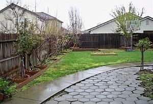 Beautiful new house in Move-in condition with full house Hunter Douglas window blinds, upgraded carpet/tile floor and upgraded tile in kitchen & baths. Open design for kitchen and family room with a fire place and a ceiling fan. Nine fruit trees in back yard produce abundant sweet fruits several months a year, including chery, peach and plum. Refrigerator and washer are included in the sale, and so are the basketball hoop in the back yard.