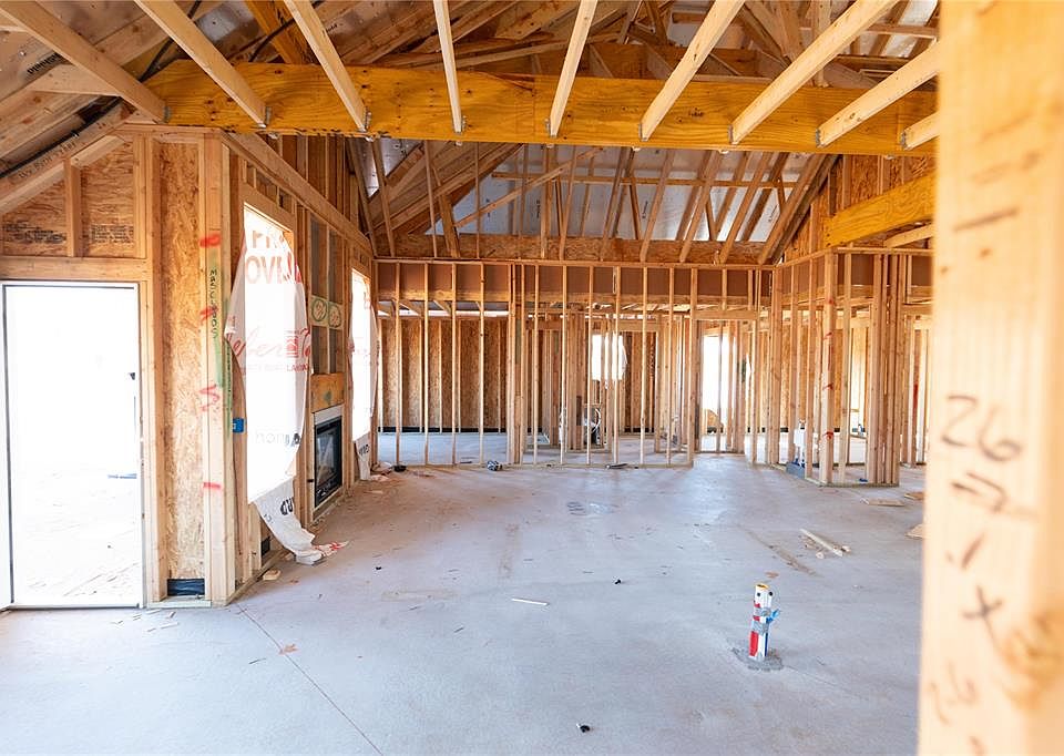 This Blue Spruce Bonus Room 1 floor plan includes 2,640 Sqft of total living space, which features 2,350 Sqft of indoor living and 290 Sqft of outdoor living space. There is also a 590 Sqft, three car garage with an in-ground storm shelter installed. This home offers 4 bedrooms, 3 full baths, 2 covered patios, a large bonus room, and a utility room. The great room welcomes a pristine cathedral ceiling with crows feet and a ceiling fan, excellent wood-look tile, rocker switches throughout, Cat6 wiring, and large windows. The kitchen supports stainless steel appliances, a 5-burner cooktop, 3 CM countertops, a center island with a trash can pullout installed, well-crafted cabinets to the ceiling with under cabinet lighting and cabinet hardware installed throughout, exceptional pendant lighting, and a separate walk-in pantry. The primary suite features a sloped ceiling with a ceiling fan, windows, and our cozy carpet finish. The attached primary bath hosts separate vanities with framed mirrors, a European walk-in shower, a free-standing tub, a private water closet, and a HUGE walk-in closet. Outdoor living has a wood-burning fireplace, a gas line, and a TV hookup. Other amenities include our healthy home technology, a tankless water heater, a whole home air filtration system, R-44 insulation, and so much more!