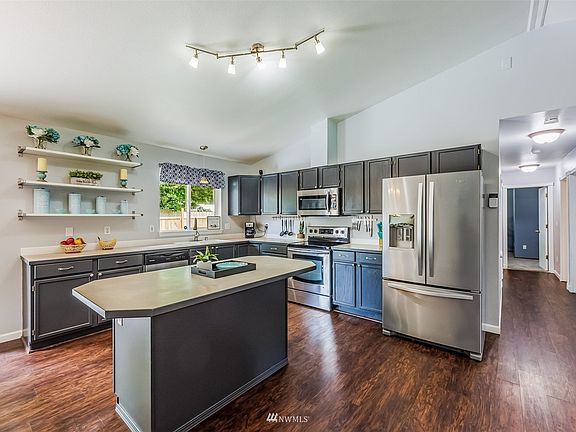 Beautiful rambler built in 2000. Amenities include: Natural Gas Fireplace, Gas Furnace, Island Kitchen, New Laminate Floors Throughout, Front Porch, 10x12 Workshop w/ Electricity, New Kitchen Sink Fixtures, Pantry, Vaulted Ceiling, Double Pane Windows, 6 ft Cedar Fully Fenced Backyard, Two Raised Garden Beds.