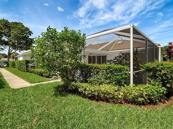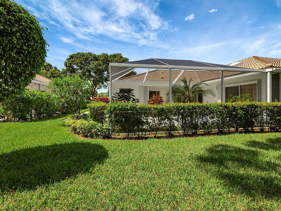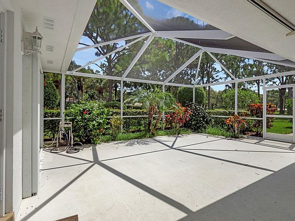 Experience the best of Palm Beach Gardens living with this one-story villa that offers an expansive screened patio with beautiful lake views. The bright interior features a well-thought-out living space with vaulted ceilings designed for comfort and relaxation, making it an ideal place to call home. The focal point is the patio with access from nearly every room! The kitchen features light wood cabinetry and gleaming white appliances that overlook the living and dining rooms. Custom built-ins highlight the living/dining rooms that offer creative storage options while the split bedroom floor plan provides the utmost privacy. Other notable features include neutral flooring and color palette throughout, sky lights, extra storage on the patio and Accordion hurricane shutters. Located in desirable Sun Terrace at the Oaks, on a quiet cul-de-sac, this community offers a heated pool, on-site manager, basic cable, common areas with lakes and mature trees, roof and exterior maintenance, including painting and pressure cleaning. Oaks Park is also nearby where you can find tennis courts, a walking/jogging trail, large pavilion and butterfly garden. This home is ideally situated close to The Gardens Mall, Whole Foods, Trader Joe's and other great shopping/dining venues. Don't miss the opportunity to make this exceptional property your new home.