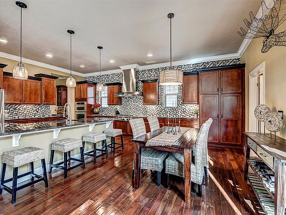 Absolutely Gorgeous Home! Shows Like a Model! Incredible Location! RidgeGate! Full Finished Basement! Updated Modern Feel & Design! Spectacular Gourmet Kitchen! High End Cabinetry! Slab Granite! Stainless Steel! 6 Burner Professional Range Top with Hood! Breakfast Bar! Butler Pantry! Large Breakfast Room! Family Room with Fireplace! Hand Scraped Plank Flooring! Upgraded Lighting Package! High End Finishes! Wrought Iron Railings! Designer Carpet & Paint! Elegant Formal Dining Room! Cozy Living Room! Fireplace! Library! Huge Master Suite! Private Balcony! Large Bath! Custom Closets! 4 Beds Up + Large Loft! Finished Lower Level! Rec Room! 4K, 3D Home Theater! Built-ins! Custom Wet Bar! Wine Storage! Chat Room with Fireplace! Office! 3/4 Bath! Storage! Great Outdoor Living Areas! Covered Front Porch! Custom Patio! Pavers! Fire Pit! Gas Grill! 3 Car Attached Garage! Walk to Bluffs Regional Park, Light Rail, Sky Ridge, Rec Center, Performing Arts, Charles Schwab, Shopping & Restaurants!