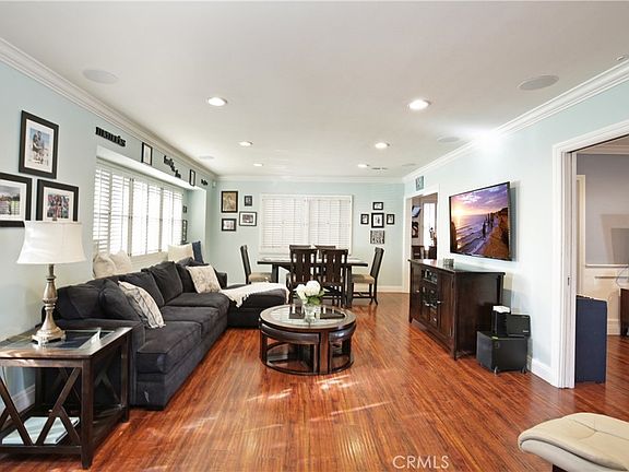NEW YEAR and NEW PRICE! Great Downey location! A spacious, Mid-Century Ranch home with 3 bedrooms and 3 updated bathrooms. Large living room with dining area opens to the den with fireplace, wainscoting and a sliding glass door to the backyard. Galley kitchen features Dupont Kodiaq countertops. Large Primary Suite with flex space perfect for nursery, office, or gym. Attached primary bathroom with dual sinks, wall-to-wall walk in shower and large closet. Recessed lighting and updated flooring throughout. Convenient inside laundry. Attached garage. Entertainer's backyard with bubbling fountain, gazebo, and a mature avocado tree. Close to schools and shopping. Recent upgrades include new convection oven, new security system, and new copper plumbing.
