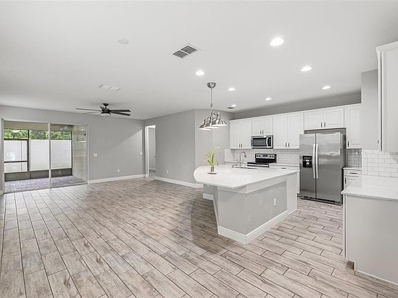 One or more photo(s) has been virtually staged. Welcome to this meticulously designed townhouse nestled in the serene Boyette Park community of Riverview, Florida. Built in 2018, this 4-bedroom, 3-bathroom home offers 2618 ft.² of modern living space with a large paved screened-in lanai. Interior Features Open-Concept Design: The main level features tile plank flooring throughout, creating a seamless flow between the living, dining, and kitchen areas. The spacious kitchen, located at the heart of the main level, is equipped with modern stainless steel appliances, marble countertops, a large walk-in pantry, ample cabinetry, and a breakfast bar, making it ideal for both everyday meals and entertaining. A generously sized bedroom is conveniently located downstairs, adjacent to a full-size bathroom, providing flexible living or guest space. Upstairs, the primary suite boasts an ensuite bathroom with dual vanities, a large garden tub, and a walk-in shower. Two additional bedrooms are also located upstairs, each sharing a full bathroom to ensure comfort and privacy for family members or guests. The open loft upstairs offers versatility as a home office, reading nook, or play area. Additional Amenities: All bedrooms are fitted with ceiling fans, and the sale includes a washer and dryer for added convenience. The home is also equipped with an ADT Alarm system, Ring Doorbell, and Ring camera in the back lanai. Exterior Features Screened Lanai: Start your day sipping your morning coffee in the screened lanai, and a perfect spot for evening relaxation, sipping a fine wine. Attached Garage: Two-car garage provides secure parking, overhead racks, storage, and epoxy flooring in the garage. Community Amenities in Boyette Park offer residents a range of amenities, including a community pool, dog park, exterior maintenance, landscaping, irrigation and more! The community is also conveniently located near I-75, Selmon Expressway, providing easy access to shopping, dining, and medical facilities. Drive time to MacDill AF Base and Tampa Airport is a short 30-minute drive. Nearby schools that families will appreciate include the Hillsborough County School District's Boyette Elementary School, approximately 1.1 miles away, as well as Bell Creek Academy and Barrington Middle School, both of which are A+ schools. Schedule your showing today! Schedule your showing today in this LOW HOA and NO FLOOD ZONE (X) Community!