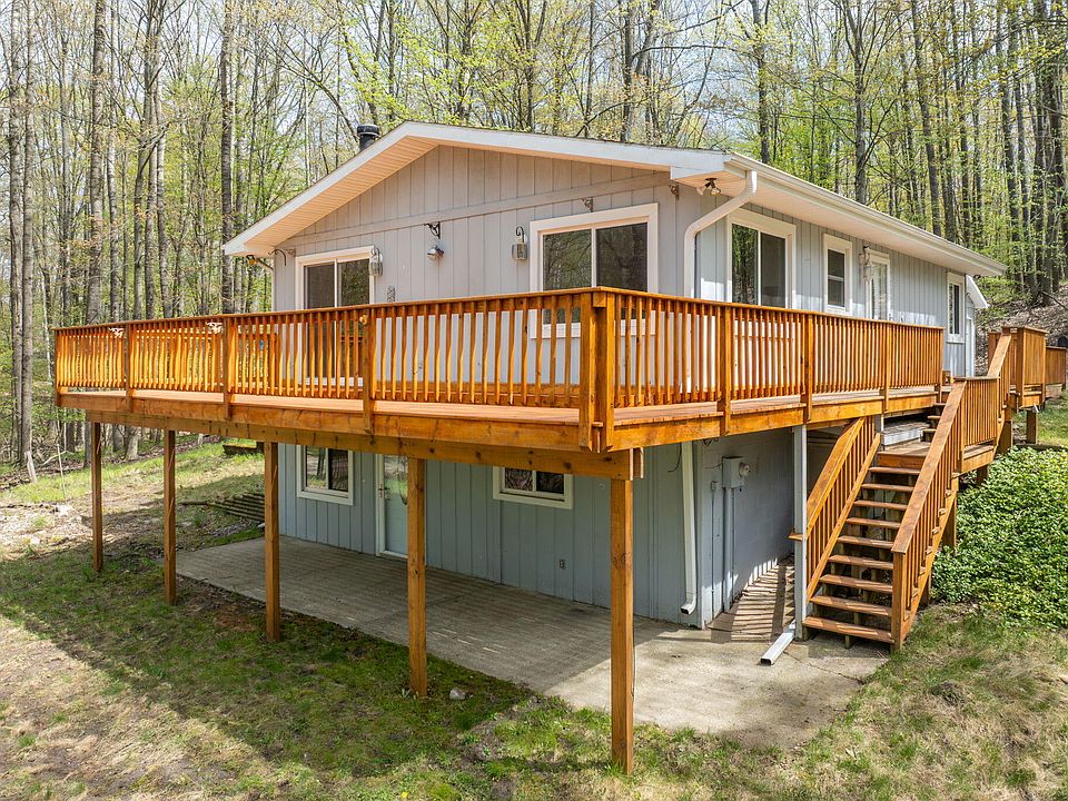 Ideally located across from approximately 900 acres of state land and just minutes from Highland Golf Course and Lake of the Clouds, this well-maintained chalet offers the perfect mix of nature, recreation, and comfort. Enjoy full Canadian Lakes amenities, including main lake boat docking and free golf privileges. Inside, the home features affordable and convenient living with a main floor suite and laundry, plus two spacious bedrooms upstairs. Take in the peaceful surroundings from the newly built deck, overlooking a beautifully kept yard and abundant wildlife. With miles of hiking and biking trails right out your walk out basement! Outdoor adventure is always within reach. Recent updates include fresh paint, newer appliances, a new deck, and a furnace replacement in 2020. Call now!