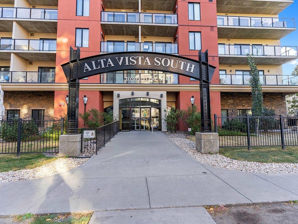 Welcome to Wihkwentowin in Edmonton concrete high-rise unit condo located in Alta Vista South. Close to MacEwan University and steps to LRT, Wihkwentowin Square Shopping, City Center and the River Valley. This meticulously well kept suite with incredible windows has unstoppable west facing natural light comes with stunning sunsets and city views. This 799 sqft, 2 bedroom, 1 bathroom + underground parking stall ( labeled 59 on P1). Featuring an open floor plan with light hardwood floors, upgraded vinyl plank flooring in the bedrooms , stainless steel appliances ,In-suite laundry, air conditioning and a HUGE WEST facing balcony with gas hook up. Alta Vista South was built by Christensen Developments with a gym, guest suite that can be rented short term for visitors and a meeting room. It is also part of a well-managed complex which is very secure . Live in the heart of Downtown in one of Edmonton's most popular condo buildings.