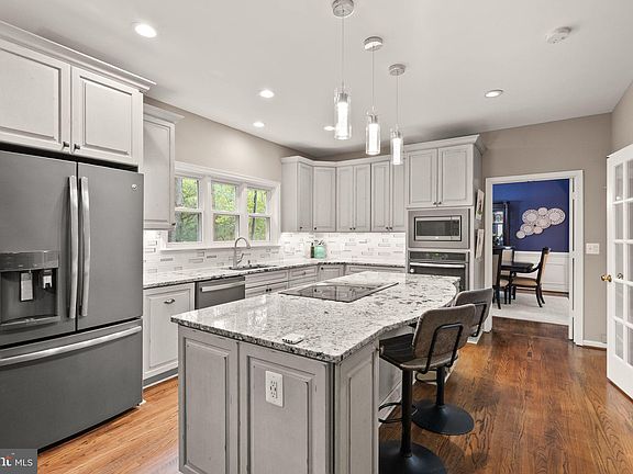 Nestled in the serene Bear Creek subdivision, this inviting colonial estate offers a harmonious blend of luxury and comfort, with its classic brick front, double-door entry, and two-car garage. Step inside to find a thoughtfully designed main level enhanced with rich wood flooring and featuring an open, eat-in kitchen that’s perfect for family meals and gatherings. With its barn door pantry, large island, and plenty of counter space, the gourmet kitchen (renovated in 2018) is the heart of the home. The spacious layout flows easily into the family room, boasting a fireplace and built-in shelving, creating a comfortable space for both everyday living and entertaining. Walk out to the screened-in back porch (built in 2024) or leave the sliding door open to enlarge the space. The formal dining room leads into a cozy sitting area—ideal for relaxing with a good book. A dedicated home office, powder room and separate laundry room round out the main level. Upstairs, there are four bedrooms, including a large primary suite with a sitting area, walk-in closet, dressing room, and luxurious primary bath, renovated in 2018. The other three bedrooms share an updated (2021) hall bath with tub/shower combination and double vanity. Venture downstairs to the fully finished basement, featuring brand-new flooring and providing endless possibilities for recreation or relaxation. This versatile space includes a bedroom, full bath, wet bar, bonus room and game area, catering to your lifestyle needs. The exterior of the property is equally impressive, set on a generous 1.3-acre lot, offering a tranquil retreat surrounded by mature trees and thoughtfully landscaped grounds in a picturesque setting. Additional updates: upstairs HVAC (2017), washer/dryer (2018), windows (2018), flagstone walkway (2020), hot water heater (2023), roof (2024), cooktop (2025). The property is ideally located within a short distance to commuter rail stations and major transportation routes, making it easy to access nearby amenities and attractions.