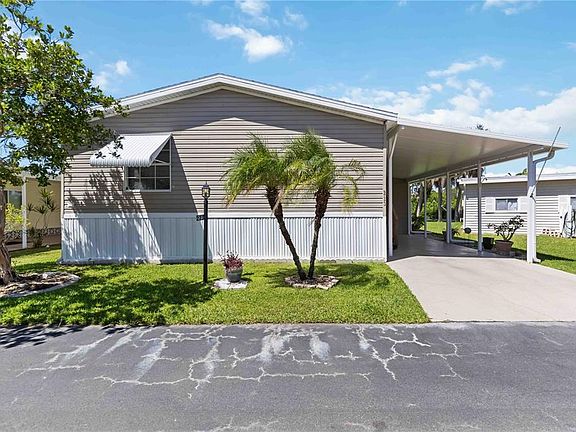 NOW OFFERED at an unbelievable price and IN ADDITION TO the seller is giving $5,000 towards the buyer closing costs, share buy in’s etc. Check out this well-maintained 3-bedroom, 2-bathroom manufactured home located in the highly sought-after waterfront community of Eagle Point. This TURN-KEY FURNISHED property is move-in ready and includes a PRIVATE BOAT DOCK directly behind the home, offering exceptional water access for boating and fishing enthusiasts. The community also features a private boat ramp, adding even more convenience for water lovers. With over 1,200 sq ft of living space, the home features vaulted ceilings, a spacious floor plan, and a large master suite complete with a walk-in closet, en suite bath with a walk-in shower, as well as a relaxing garden tub. Enjoy outdoor living on the wood deck at the back of the property, perfect for relaxing or entertaining while taking in peaceful canal views. Major updates include a NEW ROOF (2024) and NEW A/C UNIT (2023). The property sits high and dry and has never experienced flood damage, providing added peace of mind. Additional highlights include an attached aluminum carport and a large workshop, ideal for extra storage or hobbyists. Inside, you'll find a spacious interior laundry room complete with a washer and dryer and plenty of room for storage. Eagle Point is a golf cart-friendly and deed-restricted 55+ community with low fees that cover water, sewer, trash, a priority on-site manager, maintenance of common areas, a community pool, and more. The community also features a welcoming clubhouse that regularly hosts fun events and activities—perfect if you're looking to enjoy some social time and connect with neighbors. This is the ideal blend of comfort, convenience, and lifestyle in a safe and friendly neighborhood. Don’t miss this rare opportunity to own a waterfront home with direct boat access and incredible community amenities at a great price. Located in beautiful Punta Gorda, where you’ll find great restaurants and shopping nearby!