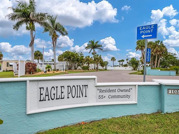 Live the Florida Dream in Eagle Point – A Waterfront 55+ Community! Priced right and perfectly located, this home is more than just a place to live, beautifully landscaped with Palm trees and Florida tolerant plants—it’s an affordable investment opportunity in one of the most desirable 55+ waterfront communities on Florida’s Gulf Coast. Eagle Point offers direct access to Alligator Creek leading into Charlotte Harbor, where boating, kayaking, and world-class fishing are part of everyday life. Imagine mornings on the community pier with your coffee as the sun rises over the water, afternoons kayaking alongside Florida’s wildlife, and evenings watching breathtaking sunsets with friends. Eagle Point isn’t just a community—it’s a year-round lifestyle. This well-maintained, move-in-ready home offers 1,056 square feet of updated living space. Best of all, it’s being sold partially furnished (with only a few personal exceptions), allowing you to start enjoying your Florida lifestyle immediately. Walk-into the climate-controlled Florida Sunroom is perfect for morning coffee or quiet reading, while the spacious dining room offers built-in China Cabinet/Entertainment center is ideal for gatherings. The kitchen features ceramic tile flooring, wraparound granite countertops with bar seating, cabinets, a window over the stainless-steel sink—perfect for those who enjoy cooking. The primary suite offers generous his and her closets and a private bath with walk-in shower, the guest bedroom provides ample space with dual closets. Guest Bathroom offers tub/shower combination single vanity. Step outside into the screened lanai for entertaining or family gatherings, complete with wicker (4) chair glass top dining table, loungers and side table are included with the purchase. Additional features include a private fenced grilling area, a storage shed/workshop with workbench, a 37’ x 12’covered carport makes for easy access into the home. Eagle Point Community is packed with amenities to keep you active and social, including a heated pool, Wi-Fi enabled clubhouse, library, grill area, billiards, ping pong, shuffleboard, bocce, fishing, and kayaking on Alligator Creek. Residents also have the option of applying for boat launch and storage permits, making it easy to embrace Florida’s waterfront lifestyle. As a Park-Share community, buyers purchase 5–20 shares at $1,000 each, which reduces quarterly dues and is refundable upon resale. HOA dues include water, sewer, trash, recreational facilities, and road maintenance. New 100 amp electrical panel/new water heater/new roof replaced 2023/new Florida Sunroom windows 2022/Kitchen granite countertops 2023/new engineered hardwood bedrooms and Sunroom. Location is second to none—just minutes from Port Charlotte’s shopping, dining, and medical facilities, Fisherman’s Village, and the new Sunseeker Resort offering world-class entertainment. Golf courses, parks, and Punta Gorda Airport with more than 55 destinations are nearby, and Southwest Florida’s pristine beaches in Venice and Fort Myers are only a short drive away. Schedule your private showing today and seize this incredible opportunity to start living in Florida the lifestyle you’ve always dreamed of!