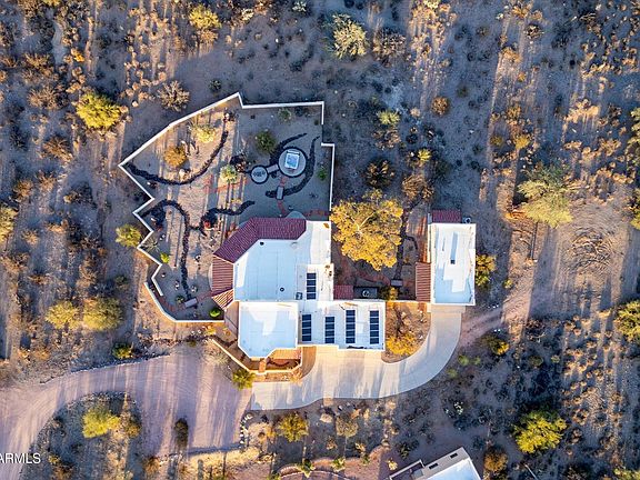 Nestled on 3.31 acres of fenced land in the highly desirable Mesa De Oro subdivision, this furnished custom-built home (2011) offers unparalleled views of Superstition and Dinosaur Mountain. This energy-efficient home features an owned solar system, delivering an annual electricity bill of $0 for its 2,938 sq. ft. - 3-bedroom + loft home. Thoughtfully designed with soaring ceilings—Great Room at 14', Primary Bedroom at 12', and Guest Bedrooms at 9'.