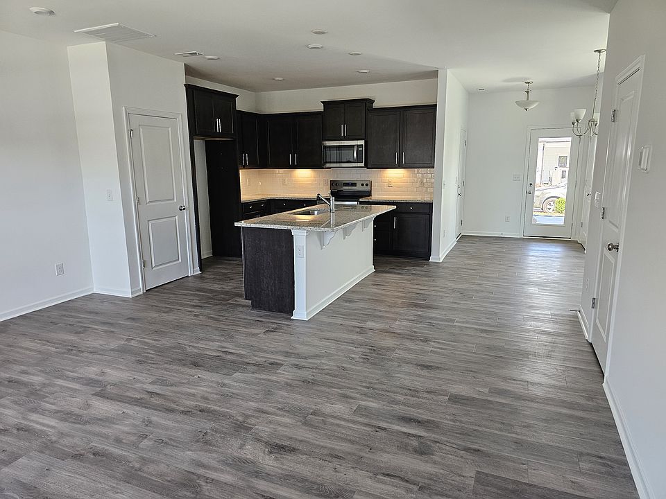 Natural lightOpen floor planKitchen islandGranite countertopsCovered patioLuxurious lvp flooring