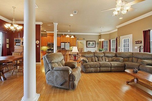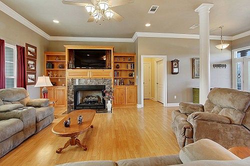 View website: http://hwy1033.GreatCustomHome.com - Open Open Open Custom Home with split bedrooms, 10 ft. Ceilings, Crown Molding and includes large Guest Home. Luxury awaits you in this one of a kind beauty that is in like new condition. 1.38 Acres with elevated deck overlooking the large stocked pond, oak tree with picnic area, outside storage and more. Slab granite in kitchen, select cypress cabinetry and built-ins are found throughout. Ceramic in baths, hallways and laundry, laminate throughout living, kitchen, breakfast & dining, carpet in bedrooms. Master offers views of pond and is appointed by a special bath with oversized shower, whirlpool bath, double vanities, extra storage and large master closet. Need a guest home, man cave or craft rooms and more? This is the one for you. The 1460 sfla guest house has a full kitchen, living, dining, laundry, 3 bedrooms and two baths. One of the upstairs bedrooms has enough room for two beds (see pictures). Covered porches and elevated wood deck are perfect for entertaining or enjoying the peaceful views every day in your own private oasis. Just minutes away from shopping and in close proximity to Fire Department and Emergency Response Services.
