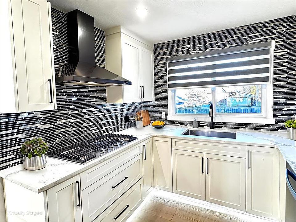 This extensively renovated, 4 bedroom, 3 bathroom home in the highly desirable community of Southwood offers the modern feel and function of a brand-new build. The 2021 transformation included major upgrades like new insulation, roof, drywall, a high-efficiency furnace and water tank, and large, bright windows installed in both the home and garage, ensuring the space is always flooded with natural light. Designer Interiors and Premium Finishes The main level showcases stunning engineered hardwood flooring throughout the principal living areas. The living room is expansive and bright, anchored by a massive 10-foot window, a stylish in-wall gas fireplace with chic brick surround, and a ceiling-mounted smart TV. The gourmet kitchen is a true chef’s delight, featuring sleek, shaker-painted cabinets. It is equipped with premium Whirlpool stainless black series appliances, including a built-in oven and microwave, a gas cooktop, and a 36-inch French door refrigerator. A functional island with its own LED lighting completes this beautiful, practical space. The primary suite is a private retreat, distinguished by a unique feature wall and an impressive walk-through closet with custom shelving and a dressing table. The luxurious 4-piece master ensuite will spoil you with black tiling, a semi-recessed double vanity, a decadent rain shower with six added jets and black penny round accents over black granite. For year-round comfort, the ensuite also includes heated floors! A separate main-floor laundry closet with a washer/dryer adds convenience. Fully Developed Lower Level The basement (easily suited—subject to municipal approval) is a fantastic extension of the living space, featuring a convenient kitchenette and a huge recreation area perfect for entertaining, games, or simply relaxing. The lower level also includes two generously sized bedrooms and a well-appointed 4-piece bathroom. Unbeatable Location and Convenience Location is paramount, and this property truly delivers! Situated on Elbow Drive, you benefit from the ultimate convenience of a large plaza directly across the street, featuring a grocery store, doctor’s office, dentist, pet store, fast food, gas stations, and more. Commuting is effortless, as you are just minutes to downtown, the Ring Road, and have easy access to all amenities in Southwest Calgary. The home is also close to both elementary and middle schools, ideal for families. The property boasts a huge fully fenced backyard, a single-car, insulated, drywalled, and painted garage, and a triple parking pad in the back. Don't miss out on this incredible value! Call or message to view this great property today. Please note that the photos used have been staged virtually with furniture and accessories. Public Open house has been Cancelled due to pending sale.