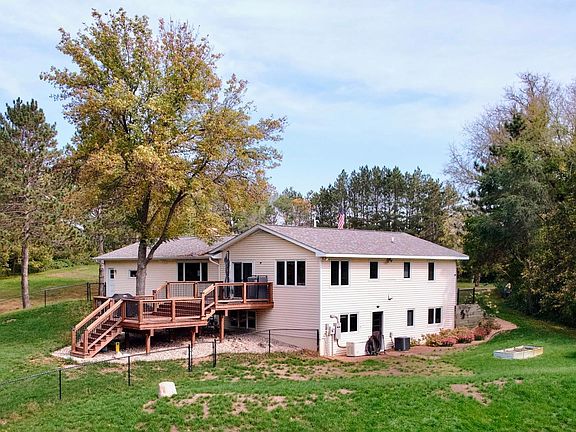 Welcome to a 6-acre, 4-bedroom 2-bath walkout home with 175' of riverfront, in move-in condition. Many upgrades, including a new 1500 sqft heated workshop with a 12' ceiling. It has a remodeled kitchen, newer appliances, fresh roofing, siding, and mechanicals. Natural gas furnaces, fireplace, and 20KVA whole house backup generator & 100Gig fiber internet for work-from-home reliability. Forced air natural gas heat & central air. Smart thermostats. Enjoy the views and convenience of the new 2-tier deck for gatherings and sunsets. A fenced in back-yard area, and a shaded playground area. Early risers will enjoy the front paver patio for sunrises and afternoon shade. There is plenty of storage for tools and toys in the upper shed on a full concrete slab, in addition to the attached garage and detached garage-workshop. Plus, the 2-car sized full concrete floor pole building via the separate gravel drive, and the garden shed with a full wood floor near the playground area.