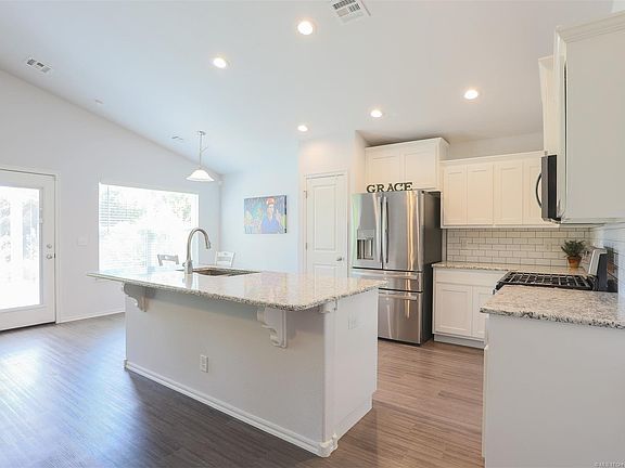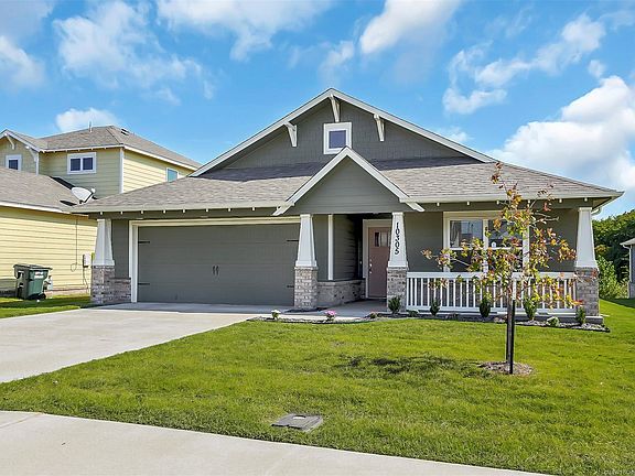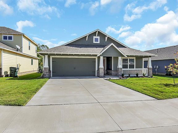 Gorgeous craftsman in like-new condition! Backs up to beautiful green belt! House is BETTER than brand new. Kitchen has granite counters, stainless steel appliances, island, walk-in pantry! Primary bedroom has soaker tub w/ separate shower. All bedrooms are spacious. Small subdivision has park and jogging/walking trail. Quiet YET close distance to all the shopping and restaurants! Owls, deer, and blue herring have been known to congregate in the wooded green belt behind the home. Seller is including refrigerator, washer/dryer set, and furniture for right offer!
