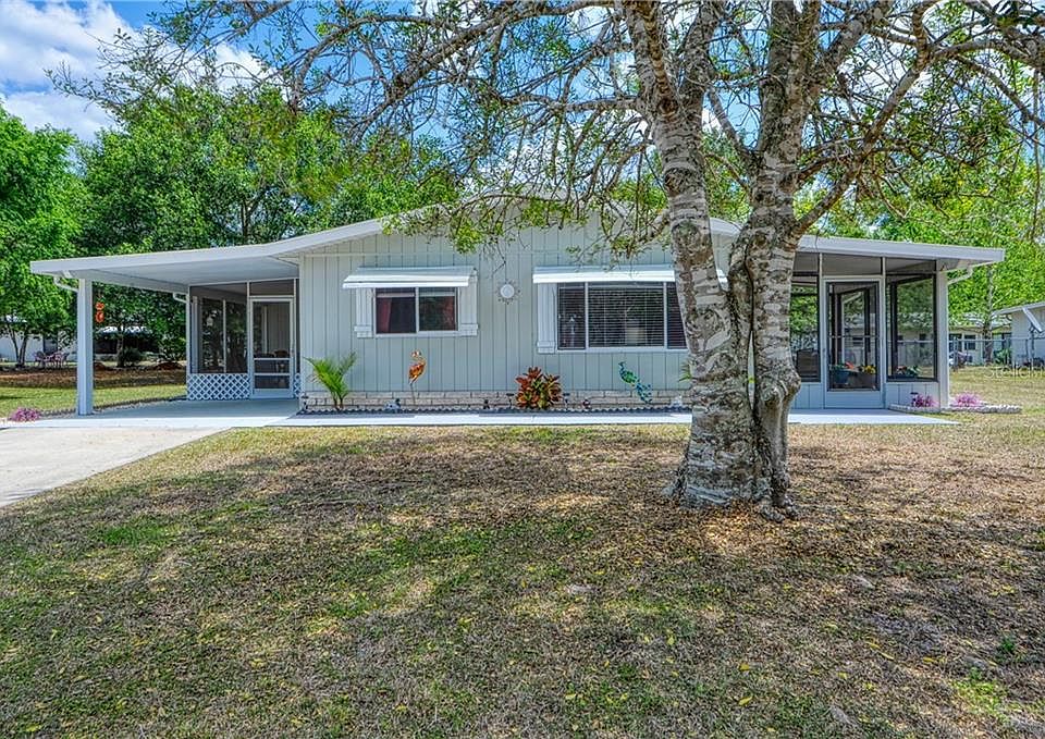 Clean as a whistle & move-in ready! This super cute 2 bedroom 1 bath home is situated in a wonderful gated 55+ community just off Hwy 200 just minutes to everything, offering tons of amenities inlcuding: 2 club houses, excersize facilities, Shuffle board, Horseshoes, billiards, Tennis, 2 community pools, and many clubs. Home has a beautifully landscaped exterior, 2 screen enclosed porches, 2 outdoor storage sheds, & a fenced in area for the dogs, this home has so much to offer. Step inside and you'll be greeted with a bright open floor plan with laminate flooring throughout (1 bedroom has carpet); spacious living room; large kitchen with dining area & all appliances; screen porch off the living room. A super location for this absolutely adorable home! Just move in and enjoy the Florida lifestyle.