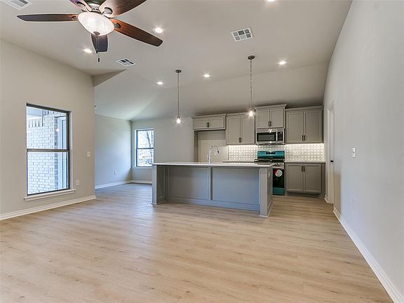 Located in a peaceful community near shopping, dining, and entertainment, with easy access to the highly sought-after Carl Albert High Schools. 4 Bedrooms, 2 Bathrooms, Kitchen: 3cm quartz countertops. Upgraded marble backsplash. Gas appliances. Walk-in pantry with ample storage. Under-cabinet lighting. Soft-close cabinets and drawers. Interior Features: 10' ceilings in the living room and kitchen for a bright, open feel. Luxury LVP flooring throughout common areas. Upgraded carpet with premium padding in bedrooms. Designer finishes throughout the home. Master Suite: Oversized walk-in shower with seating. Separate toilet room for privacy. Walk-in closet with a built-in dresser and upgraded quartz surfaces. Outdoor & Additional Features: Large back porch for relaxing or entertaining. Upgraded 2-car garage with windows for natural light. Longer driveway for extra parking. Spacious laundry room with storage and hanging space. A smart layout minimizes sound transfer between rooms, making this home both luxurious and functional.
