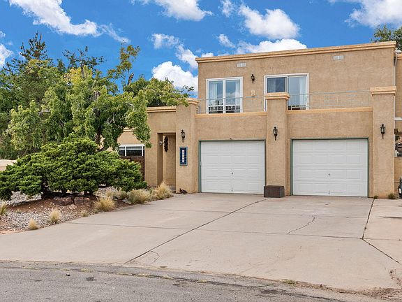 Well loved two story home with an in ground pool 40*18 in Length and 4ft-8ft depth. Updated, new floors, spacious living areas quality living, defined yet open rooms that access the outside pool/ patio area. Large study with built in's, half bath, all on main floor. Upstairs newly carpeted with two large bedrooms, hall bath, primary bedroom with Sandia Mountains views welcoming you every morning. Access to east deck. Fabulous! Situated on a private cul de sac. Green house to enjoy all year long, and dual CFA unit for the second level with Refrigerated air. A wonderful place to call home.