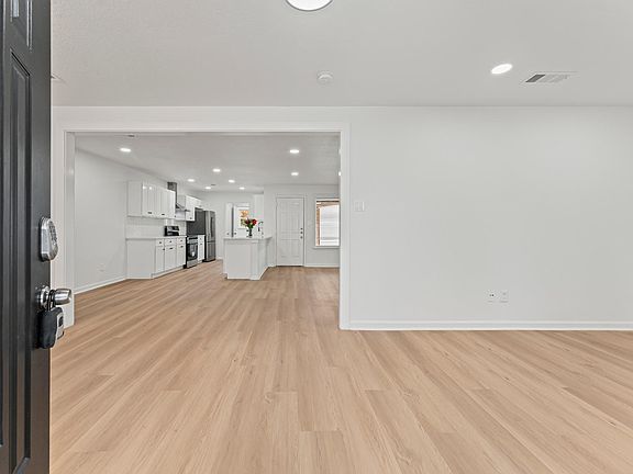 Step inside to a large, bright, airy interior featuring white oak toned LVP flooring throughout, fresh recessed lighting, and double-pane windows that fill the space with natural light. The kitchen has been fully refreshed with new stainless-steel appliances, quartz countertops, and plenty of cabinet space, the perfect setup for cooking and entertaining.