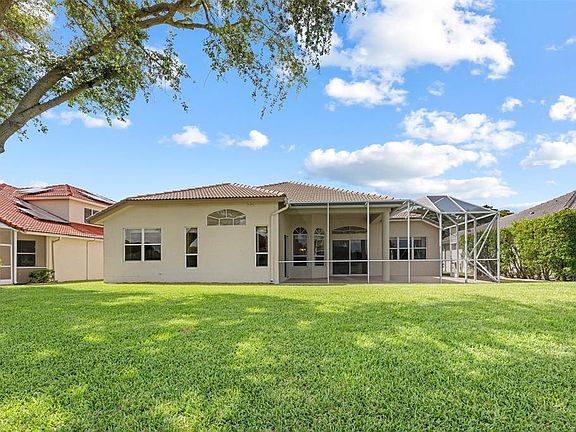 Stunning 3-bedroom, 2-bath home with breathtaking lake views in a desirable Lexington Estates gated community! This move-in ready residence features a spacious 2-car garage, large screened enclosure perfect for outdoor living, and a well-designed split bedroom plan for added privacy. Enjoy elegant touches throughout including large neutral tile flooring, a formal dining room, granite countertops, and a bright eat-in kitchen. The community offers resort-style amenities: pool with cabana, tennis, pickleball, playground, BBQ grills, and a low HOA. A true Florida lifestyle awaits!