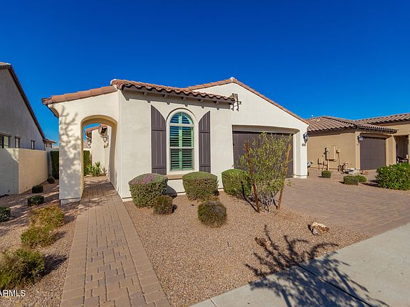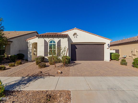 Welcome to the prestigious 55+ Eastmark Community of Encore. This gorgeous open floor plan includes plantation shutters, wood-look tile floors, & neutral paint throughout. The open-concept kitchen offers built-in black matching appliances, a center island with a breakfast bar, granite counters, wood cabinets, and a pantry. Designer pendant lighting at the kitchen island and dining room highlight the space. A large main bedroom with split floor plan has a bathroom boasting a step-in shower, dual sinks, and a walk-in closet. Separate laundry room and washer & dryer stay. Low maintenance desert-style backyard features a covered patio and lovely pavers for relaxing evenings or entertaining. Don't miss the 2-car garage! Welcome Home