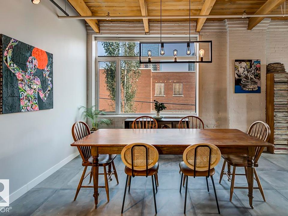 Step inside one of Edmonton’s rarest lofts — a top-floor corner unit in the historic 1929 John Deere Warehouse, reimagined by DUB Architects as Seventh Street Lofts. 945 sqft of wide-open living with soaring 13 ft fir-beam ceilings, exposed brick, and massive south + east windows that pour in natural light. Industrial character meets modern upgrades: imported porcelain tile, fresh paint, a sleek renovated 4-piece bath, and brand-new A/C. The kitchen’s stainless appliances and island are built for gathering, while the private bedroom with full wardrobe keeps life organized. This loft doesn’t box you in — it flexes with your lifestyle. In-suite laundry, your own parking stall, and bylaws that welcome both pets and Airbnb mean freedom, not restrictions. In the heart of downtown’s Ice District, steps to MacEwan, cafés, the farmers market, nightlife, and the future LRT, this isn’t just a loft. It’s a piece of Edmonton’s story, built for the way you actually live.