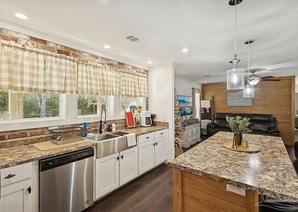 Center islandCovered storage areaCovered back porchLvp flooring throughout