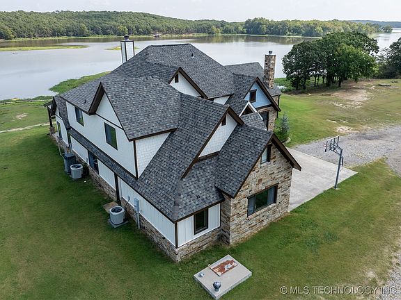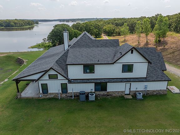 RARE OPPORTUNITY to own this ONE-OF-A-KIND, sprawling, Okemah Lake property on 6.48 m/l acres! The stunning property offers a luxury home with 3+ bedrooms, 2.5 bath, 2 living areas, office, walk-in pantry, mudroom and utility room with custom built-in cabinetry. The massive Thermal windows and custom sliding doors make the covered outdoor living space very accessible without giving up any of the stunning views. Additionally, the enormous windows overlooking the lake allows natural light into nearly every room. The outdoor living space offers an outdoor kitchen including refrigerator and built-in ice-maker with granite countertops, wood-burning fireplace, and TV. This property is designed for both relaxation and entertainment, all while showcasing the breathtaking, panoramic views of the lake. The main house boasts an elegant design with vaulted ceilings and luxury finishes throughout, including custom cabinetry with chiseled edge, quartz countertops, beautiful stained wood floors, wood-burning fireplace, and built-in interior and exterior stereo speakers. There is also an additional one bedroom, one bath cabin with loft, fireplace, and large windows offering lake views. This space is great for hosting guests or creating a private getaway. With direct access to the lake and private double-slip boat dock, you can spend your days fishing, boating, or relaxing along the water's edge. The expansive tree-lined landscape offers plenty of space for hunting, nature exploring, and ATV trail riding. Deer, waterfowl, and other wildlife frequent the area. The attached garage and shop building offer plenty of storage and workspace. Whether you're seeking a peaceful luxury home, a hunting and fishing retreat, or just enjoying the wildlife and scenic views, this unique property in Okemah offers it all! Conveniently located between Tulsa and Oklahoma City. You don’t want to miss this chance of a lifetime property at the Okemah Lake!