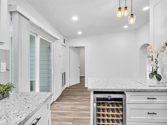Stunning fully remodeled home on the quiet street with the new construction homes around. Enjoy fishing under the miracle sunsets at less than 1 min walk to the water. Modern interior design full of natural light, high ceilings. Open kitchen with the gorgeous backsplash, under cabinet LED light and wine cooler (REFRIGIRATOR, WASHER, DRYER are included). One of the rooms could be easily converted to the third bedroom. Upstairs bedroom with the huge and long walk-in closet, that may serve as another den/study or lots of extra storage. Gorgeous loft with the build-in shelfs is perfect for the library /office/ game room - open to downstairs. Accent fireplace and chandelier makes this home so extravagant. Lots of space at the front porch with the cutest swing and water view + more space at the huge back porch/patio. Fenced big backyard. Another room /shop/ storage downstairs. Brand new windows, slide-in doors, roof and pretty much everything inside the house.
